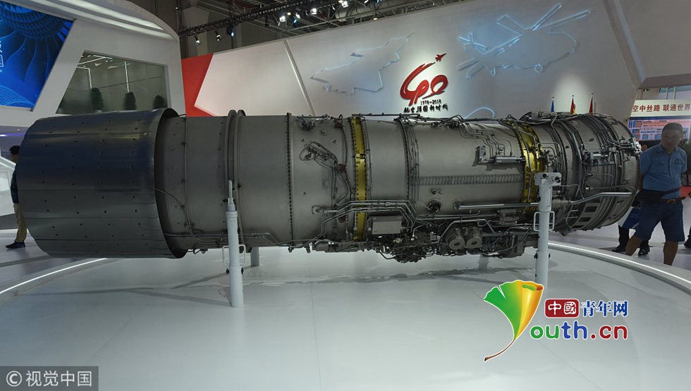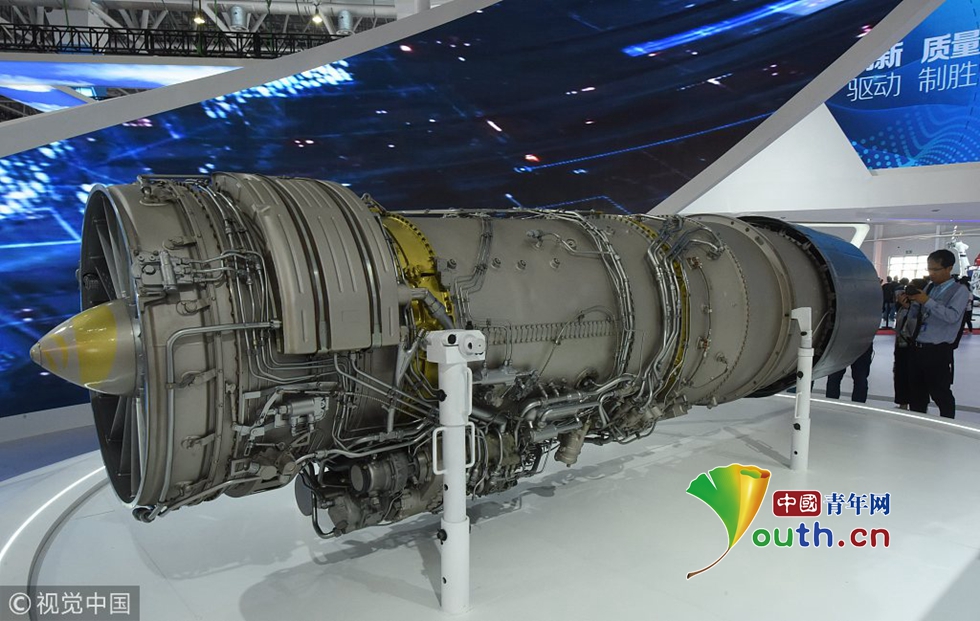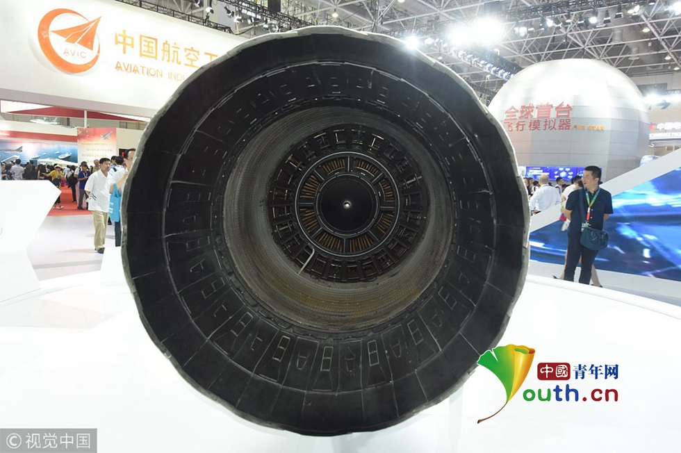 2018年11月7日,珠海航展上,觀眾在觀看國產新型渦扇發動機“太行發動機”。之前的航展上殲10B依托國產發動機一鳴驚人,獲得滿場喝彩。