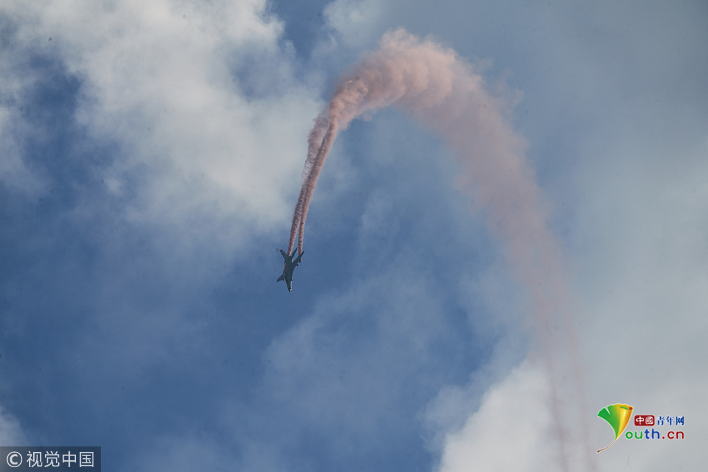 2018年11月8日,廣東珠海,第十二屆中國(guó)國(guó)際航展第三天。空軍“八一”飛行表演隊(duì)的隊(duì)員們,發(fā)揚(yáng)連續(xù)作戰(zhàn)精神,給觀眾們表演了七機(jī)分組開(kāi)花、四機(jī)編隊(duì)橫滾等高難動(dòng)作,受到觀眾們的稱(chēng)贊。視覺(jué)中國(guó)