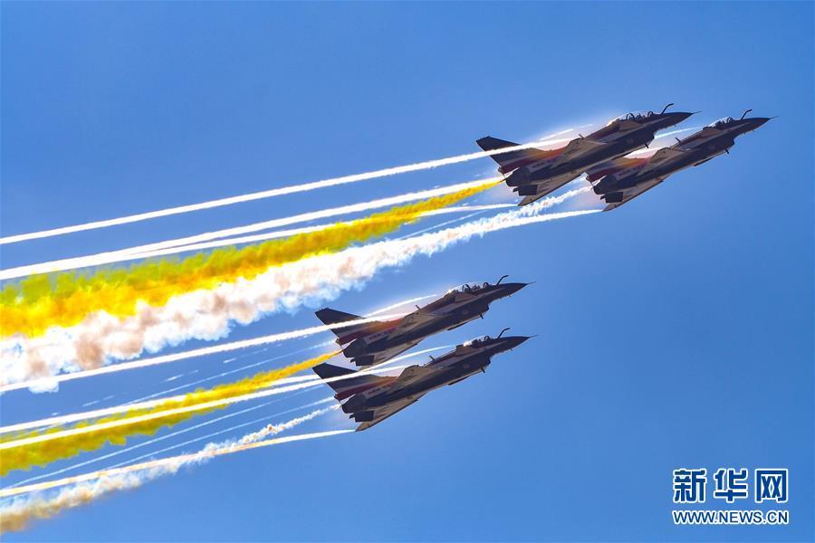 11月6日,中國空軍八一飛行表演隊在航展現場進行飛行表演。當日,第十二屆中國國際航空航天博覽會在珠海開幕。 新華社記者楊光攝