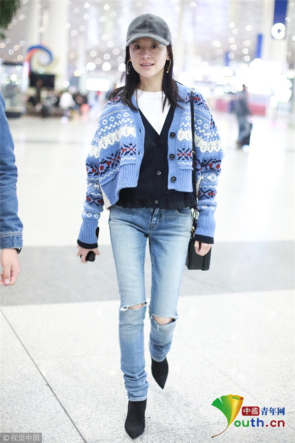 2018年11月8日,北京,“不老女神”董潔現身機場,雖然素面朝天依舊顏值超高,身高1米6也輕松擁有大長腿,身材比例超棒!