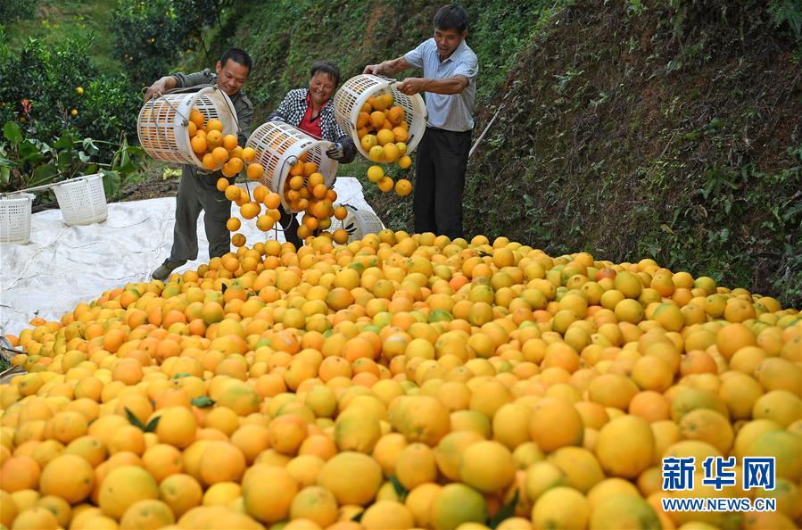 近日,江西省贛州市尋烏縣近20萬畝果園進入豐收采摘期,當地果農抓住晴好天氣開始采摘臍橙,果園一派繁忙景象。新華社記者 萬象 攝