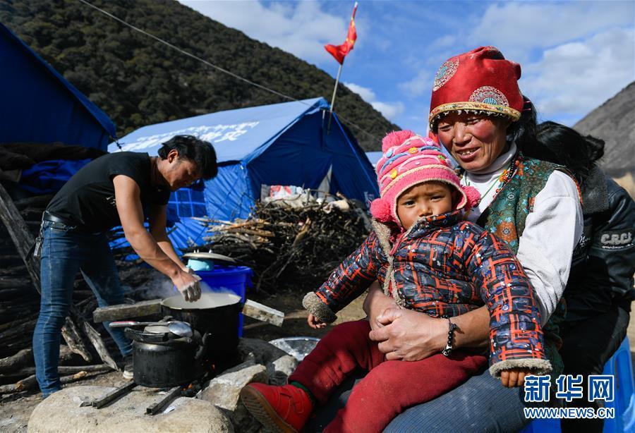 11月12日,群眾在西藏昌都市江達縣波羅鄉康扎西安置點內休息。 西藏自治區江達縣波羅鄉康扎西安置點,離波羅鄉政府直線距離約3公里,位于一處地勢開闊平緩的山谷中,比堰塞湖水面高出100多米。10月11日金沙江白格段山體滑坡發生后,當地就在這里設立了安置點,安置附近受災群眾。 新華社記者 劉東君 攝