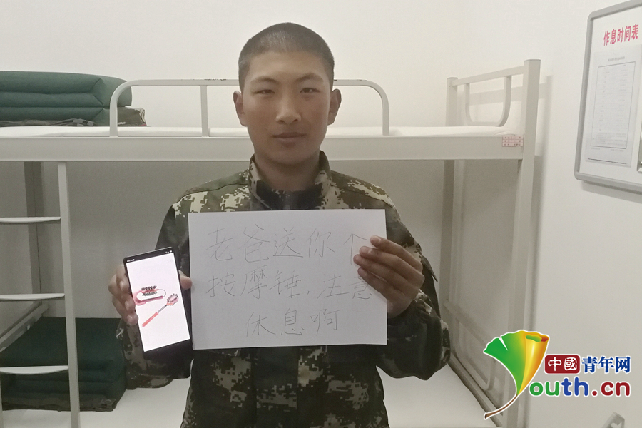 “爸爸說最近肩膀有點(diǎn)痛,給他買個(gè)按摩錘,工作別太辛苦,要注意休息。”武警北京總隊(duì)執(zhí)勤第二支隊(duì)供圖。