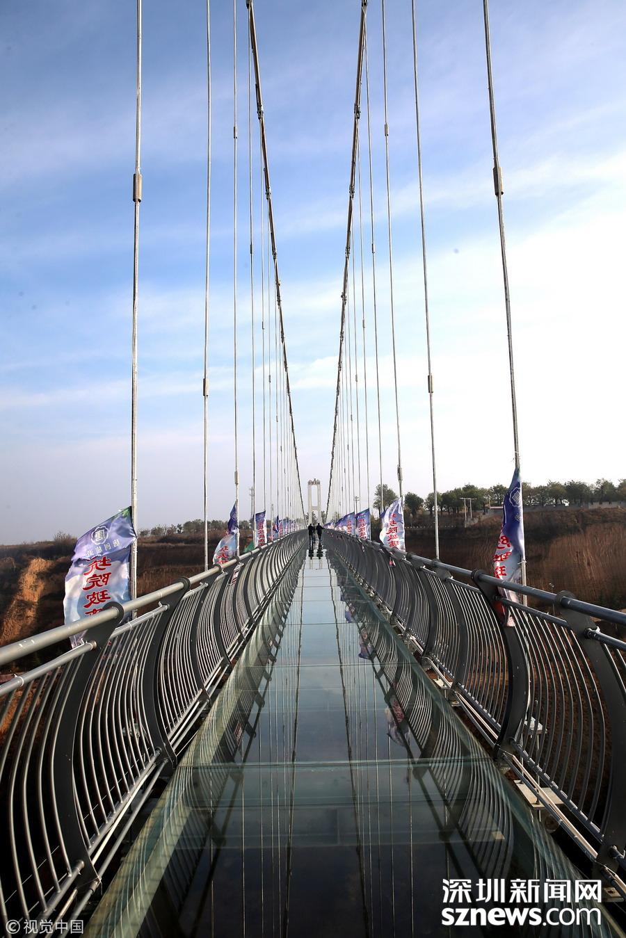 深圳新聞網訊 河南三門峽,位于陜州地坑院景區玻璃天橋。該項目橋梁總投資2600萬元,全長368米,寬3米,高108米,是目前河南省內最長的玻璃天橋,還將陸續對外開放夜景效果、聲光效果以及更多的體驗效果,逐步打造成整個豫西地區乃至全省的旅游打卡新地標。