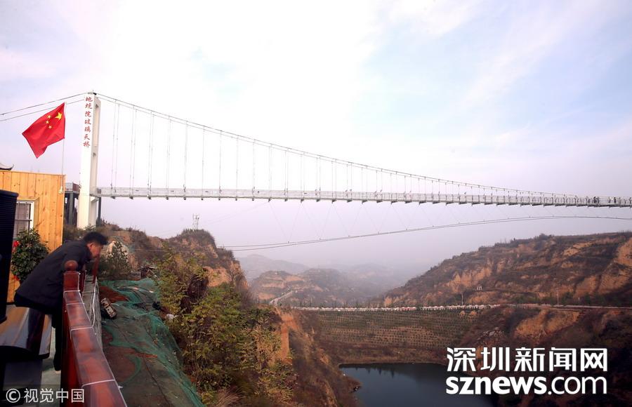 實拍地坑院景區玻璃天橋 全長318米高108米
