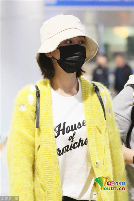 日前,楊紫現身長沙黃花機場,她頭戴漁夫帽的她口罩遮面,身著鮮黃針織衫相當搶眼,一路獲粉絲跟拍。