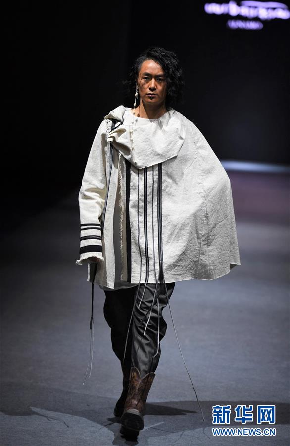 模特在AJ-NAMO藏裝秀上展示藏族設計師阿佳娜姆設計的時裝(11月18日攝)。 新華社記者 普布扎西攝
