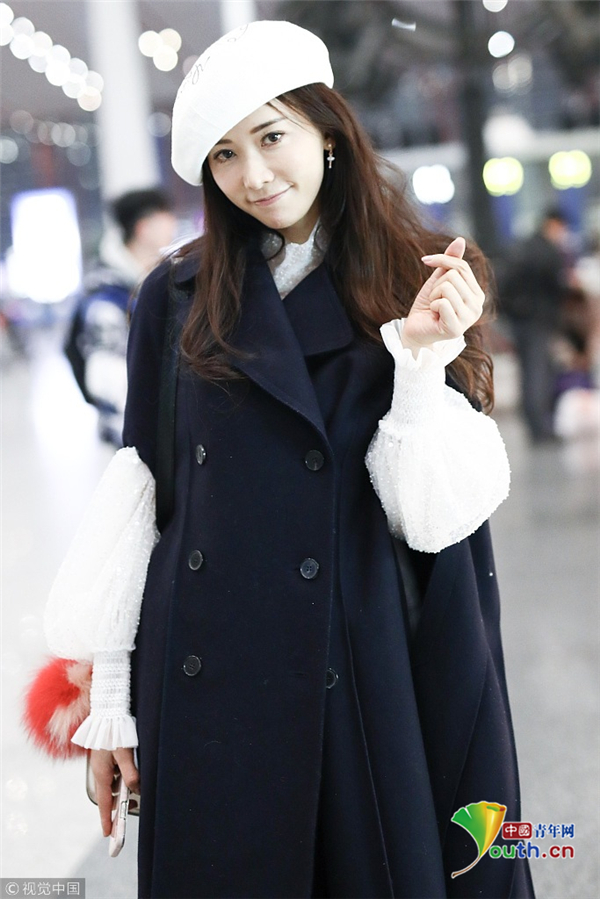 11月19日,北京,林志玲現(xiàn)身機(jī)場(chǎng),林志玲穿黑色大衣配貝雷帽溫暖俏皮,揮手賣萌露修長(zhǎng)美腿女神氣質(zhì)爆棚。