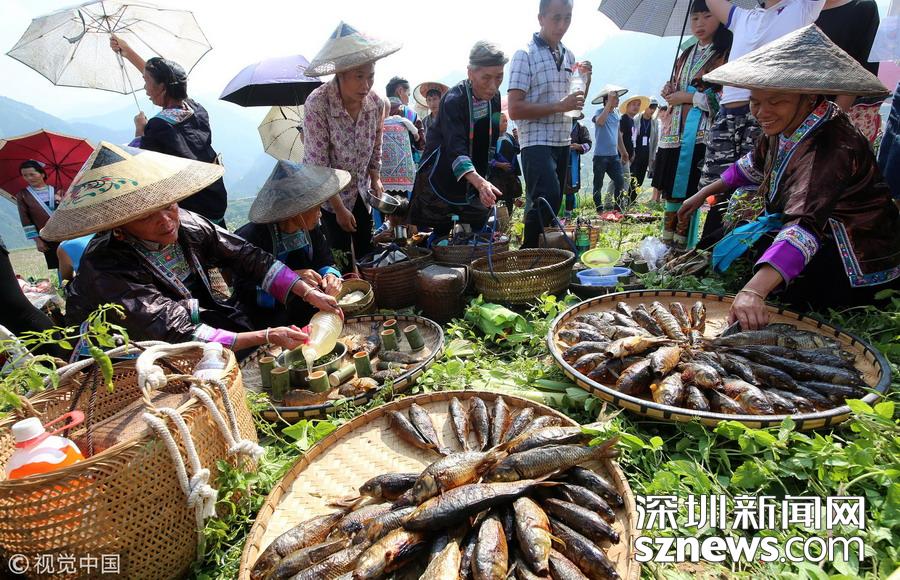 深圳新聞網訊 2018年9月15日,廣西柳州市融水苗族自治縣喜迎中國首屆“農民豐收節”——2018金秋燒魚季啟動儀式在桿洞鄉花孖苗寨舉行,數百名苗族群眾和游人共同開展了水田拔河、田間捉魚、傳統打谷和燒魚等活動,慶祝豐收。