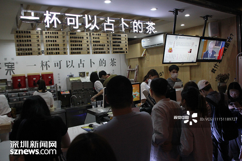 2018年4月21日,重慶,萬達廣場附近有一家新開業的網紅答案茶的冷飲店,這家答案茶冷飲店人氣異常火爆,門前已排起了兩條“長龍”。