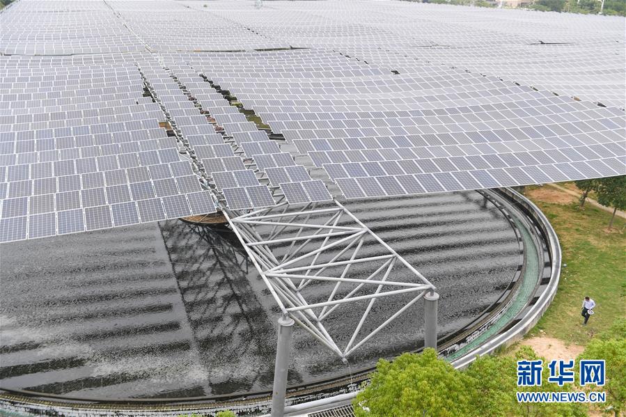 這是11月20日拍攝的福建省石獅市中心區城市污水處理廠處理池上的分布式光伏發電項目。 新華社記者 宋為偉 攝