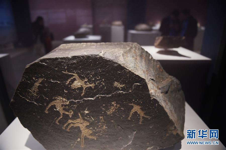 這是在中國美術館展出的展品“西夏騎者與駱駝巖畫”(11月21日攝)。新華社記者 魯鵬 攝
