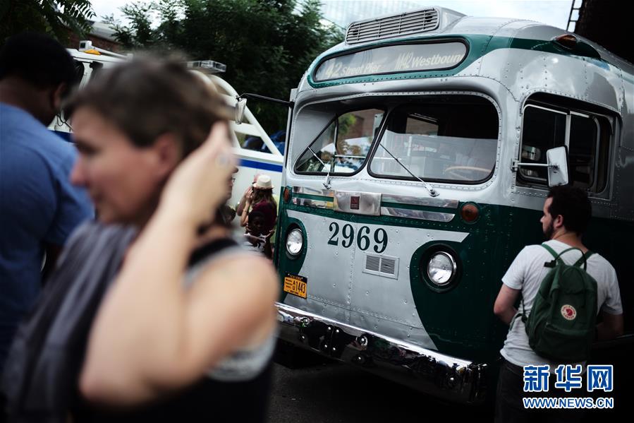 當(dāng)日,由紐約交通博物館主辦的第25屆紐約巴士節(jié)在布魯克林舉行,十余輛巴士敞開車門,向民眾展示了紐約地面公共交通工具80多年來的變遷。