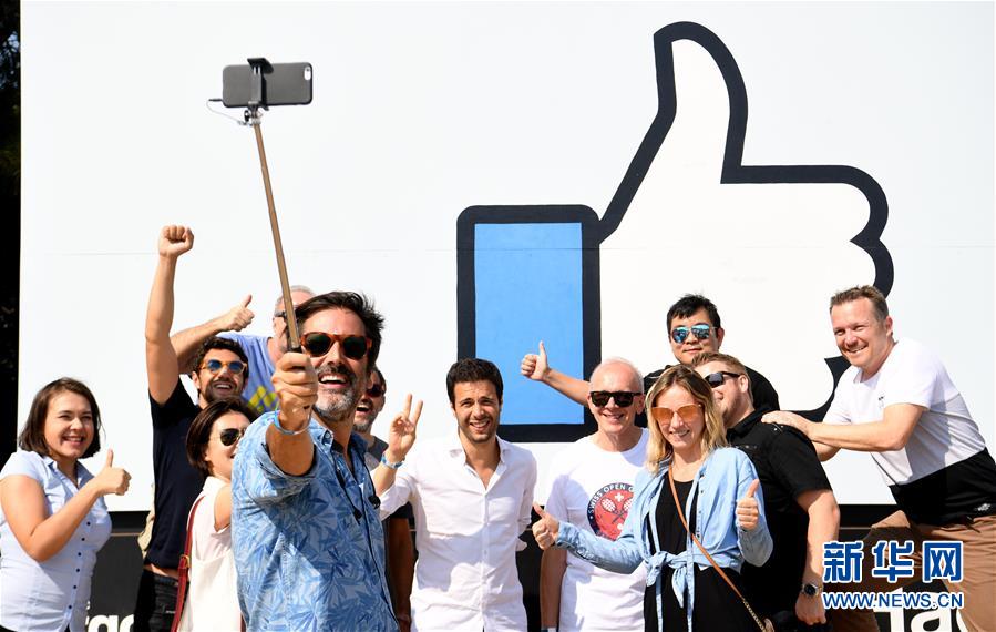 8月11日,在美國(guó)舊金山灣區(qū),參加“臉書節(jié)”的游客在臉書園區(qū)標(biāo)志前合影。當(dāng)日,舊金山灣區(qū)臉書園區(qū)舉行“臉書節(jié)”,人們?cè)诨顒?dòng)中欣賞文藝表演,品嘗美食,乘坐游樂設(shè)施等,活動(dòng)收入將捐給慈善團(tuán)體。新華社記者吳曉凌攝