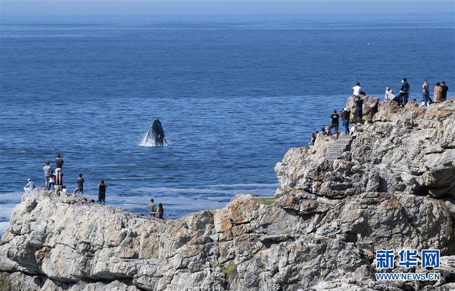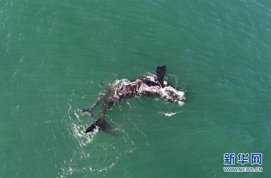 9月30日,在南非赫曼紐斯小鎮(zhèn)附近海面上,南露脊鯨在海岸邊暢游。9月29日,位于開普敦以東約115公里的赫曼紐斯小鎮(zhèn)迎來2018年的鯨魚節(jié),來自世界各地的游客可乘船出海觀鯨,也可在岸邊等待鯨魚的到來。新華社記者陳誠(chéng)攝