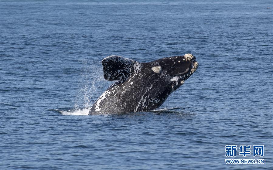 9月30日,在南非赫曼紐斯小鎮(zhèn)附近海面上,一頭南露脊鯨躍出海面。9月29日,位于開普敦以東約115公里的赫曼紐斯小鎮(zhèn)迎來2018年的鯨魚節(jié),來自世界各地的游客可乘船出海觀鯨,也可在岸邊等待鯨魚的到來。新華社記者陳誠(chéng)攝