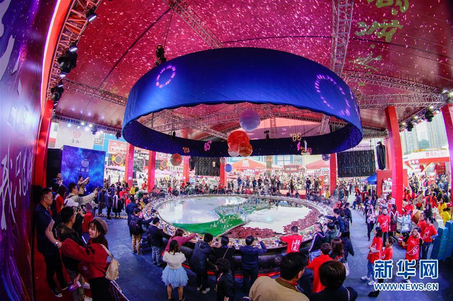 10月19日,食客們圍坐在一口特大火鍋前品嘗。 當(dāng)日,第十屆中國(guó)(重慶)火鍋美食文化節(jié)在重慶市江北區(qū)正式開幕。本屆火鍋美食文化節(jié)為期4天,以“麻辣happy城市節(jié)日”為主題,50000平方米的展區(qū)吸引了70余個(gè)火鍋品牌、300余家火鍋供應(yīng)鏈企業(yè)參展,萬人同燙火鍋的盛況在“火鍋之都”重慶再現(xiàn)。 新華社記者 劉潺 攝