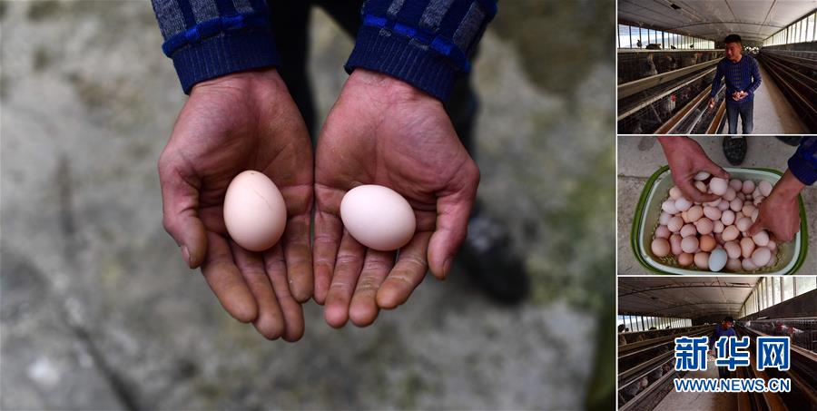 拼版照片:左圖為貧困戶李先強手捧養殖合作社生產的雞蛋(11月19日攝);右圖為李先強在雞舍里撿雞蛋(照片均攝于11月19日)。李先強是融水苗族自治縣香粉鄉香粉村的貧困戶,從2016年開始,他和15個貧困戶一起發展土雞養殖。目前合作社養有3000多只雞,年產雞蛋1萬多斤。 廣西融水苗族自治縣是國家扶貧工作重點縣,全縣“九山半水半分田”,生活生產環境較為惡劣,脫貧攻堅任務艱巨,目前還有7.68萬貧困人口。面對經濟發展落后、貧困面廣且程度深的現狀,當地把脫貧攻堅與創新產業扶持相結合,依托生態資源優勢,實施“特色產業富民行動”,通過發展特色民族旅游、林下經濟和特色養殖業等扶貧產業,帶動貧困群眾依靠勤勞的雙手,拔窮根摘窮帽,實現脫貧致富。據了解,目前全縣貧困戶參與特色產業發展的有2.9萬戶,扶貧產業覆蓋率達95%。 新華社記者 黃孝邦 攝