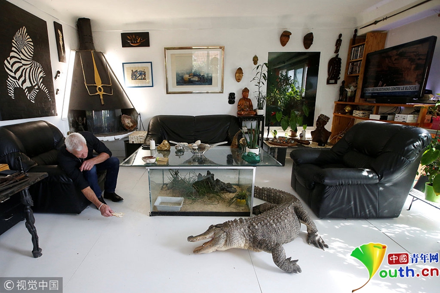 中國(guó)青年網(wǎng)北京9月21日電 當(dāng)?shù)貢r(shí)間2018年9月19日,法國(guó)67歲的法國(guó)男子Philippe Gillet與400多只爬行動(dòng)物生活在一起,有鱷魚(yú)、蜥蜴、眼鏡蛇等等。