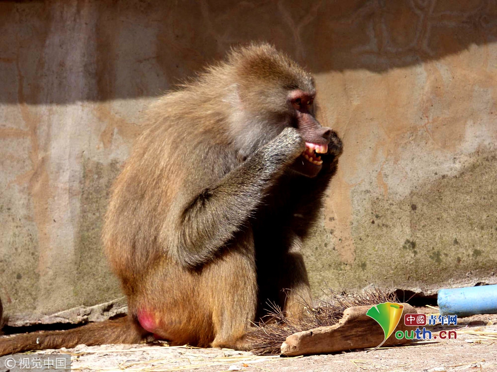 2016年9月15日,武漢動(dòng)物園,獼猴品嘗特制月餅。