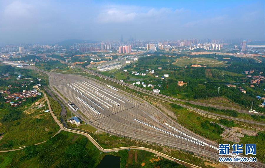 這是廣西南寧動車所內準備發往各地的動車組列車(6月18日無人機拍攝)。 廣西壯族自治區成立60年來,鐵路建設發生翻天覆地的變化。來自中國鐵路南寧局集團有限公司的數據顯示,1958年廣西鐵路總里程為1346.3公里,如今廣西鐵路總里程達5191公里。廣西與周邊相鄰省份間實現動車“公交化”開行。此外,北部灣港—重慶班列、東盟海產品冷鏈班列、“百色一號”果蔬專列等的開通和運營,強化了鐵路供給的針對性和有效性。鐵路成為助推廣西經濟社會快速發展的“大動脈”。 新華社記者黃孝邦攝