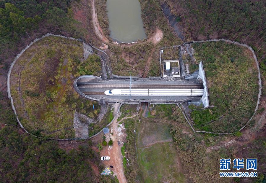 一列動車穿越南寧郊區一處隧道(2月11日無人機拍攝)。 廣西壯族自治區成立60年來,鐵路建設發生翻天覆地的變化。來自中國鐵路南寧局集團有限公司的數據顯示,1958年廣西鐵路總里程為1346.3公里,如今廣西鐵路總里程達5191公里。廣西與周邊相鄰省份間實現動車“公交化”開行。此外,北部灣港—重慶班列、東盟海產品冷鏈班列、“百色一號”果蔬專列等的開通和運營,強化了鐵路供給的針對性和有效性。鐵路成為助推廣西經濟社會快速發展的“大動脈”。 新華社記者陸波岸攝