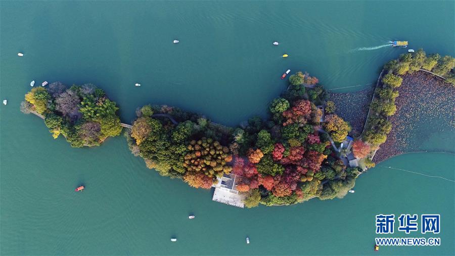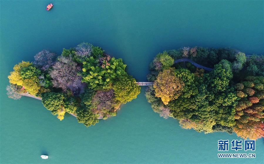 初冬時節,在湖南長沙的湖南烈士公園年嘉湖畔,色彩斑斕的樹葉與一湖碧水相映成趣,構成一幅美麗的畫卷。 新華社記者 李尕攝