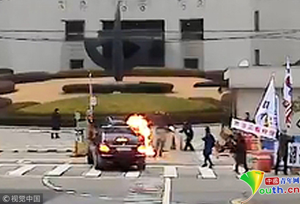 驚險(xiǎn)!韓國最高法院院長上班途中被男子扔燃燒瓶