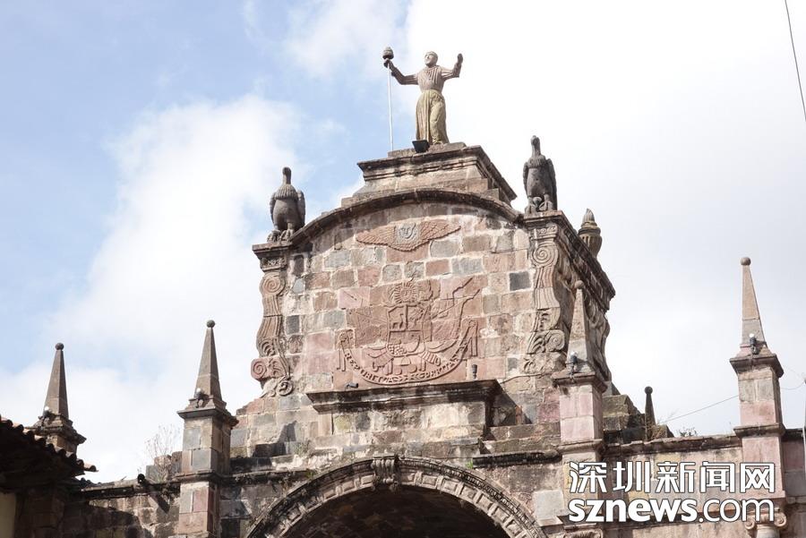 后來西班牙殖民者又修建了大批屋舍,兩種建筑風格融合,被譽為西班牙—印加的獨特建筑方式。中心是武裝部隊廣場,正中聳立著一位印第安人的全身雕像。李仁奇攝