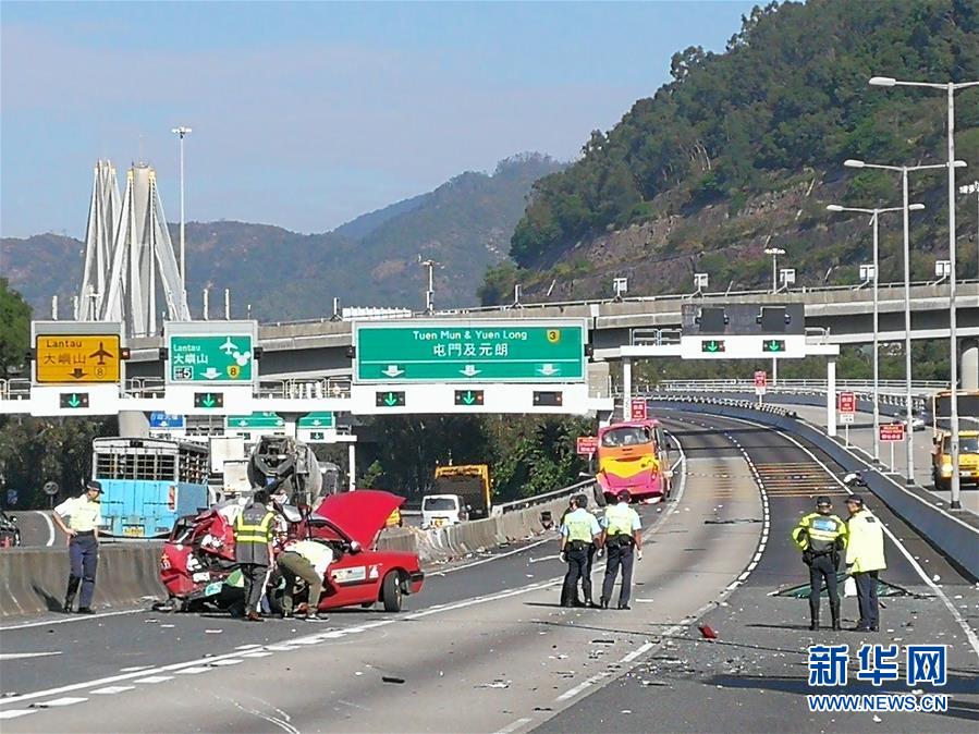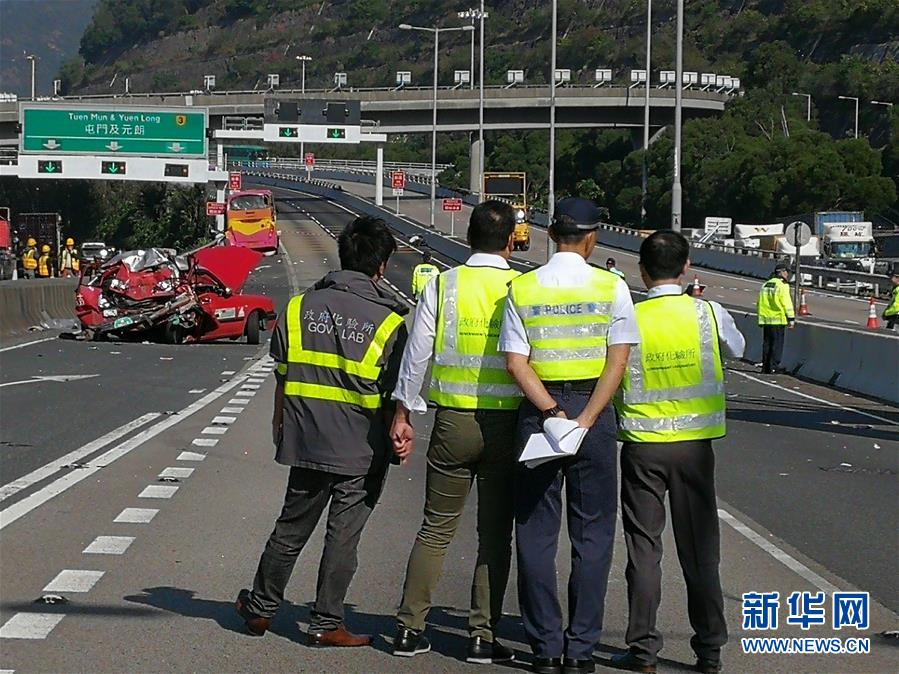 11月30日凌晨,香港青衣長青公路發生嚴重車禍,導致5人死亡,30多人受傷。目前所有傷者已被分別送到附近4家醫院,救援正在進行當中。 新華社記者 吳曉初 攝