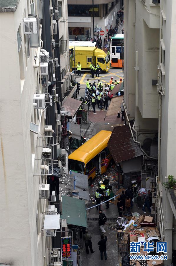 這是12月10日在香港北角拍攝的事故現場。 12月10日下午2時左右,香港北角發生車禍,一輛校巴沖上行人路。 新華社記者 盧炳輝 攝