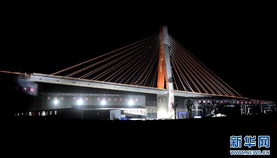 當日凌晨,自帶弧度和大陡坡、形似一輪新月和登云天梯的1.65萬噸斜拉橋在河南鄭州近郊的夜幕中轉體成功,標志著在建的鄭萬鐵路順利跨越徐蘭高鐵,同時也填補了國內小曲線、大縱坡、大偏心轉體斜拉橋施工的空白。