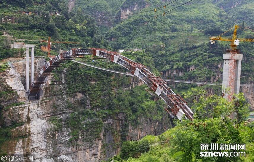 2018年5月30日,云南昭通,鸚哥大橋完成最后一段35米引橋現澆箱梁作業,標志著“鸚哥溜索改橋”主體工程完工,進入最后階段的橋面鋪裝和防護欄施工,預計6月底建成通車。
