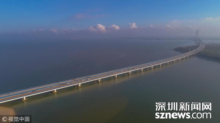 深圳新聞網訊 2018年12月5日,海口,高空航拍橫跨海口北港島的鋪前大橋。 據了解,鋪前大橋是目前國內抗震設防烈度最高、設計基本風速最大,且跨越地震帶活動斷層的跨海大橋,是國內首座跨地質斷裂帶的大型橋梁。總投資約30.1億元,該將在今年年底建成通車,將加快海南自貿港建設而助力。