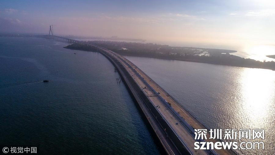 2018年12月5日,海口,高空航拍橫跨海口北港島的鋪前大橋。