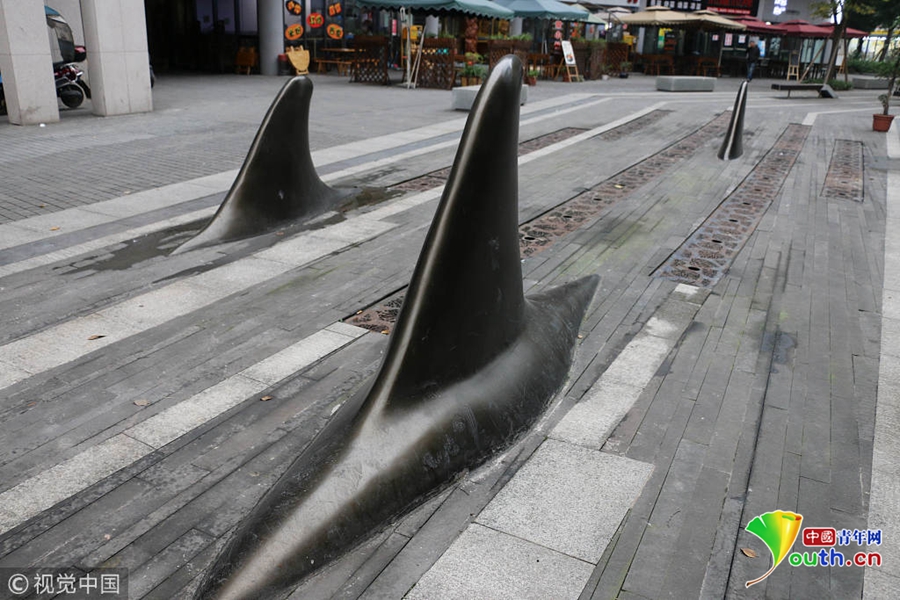 對于這種設計,不少市民覺得比較精巧的,遠遠地望去,就好像在海面上露出魚鰭的一群鯊魚,不僅可以防止被車輛占道,而且還有點裝飾的效果。
