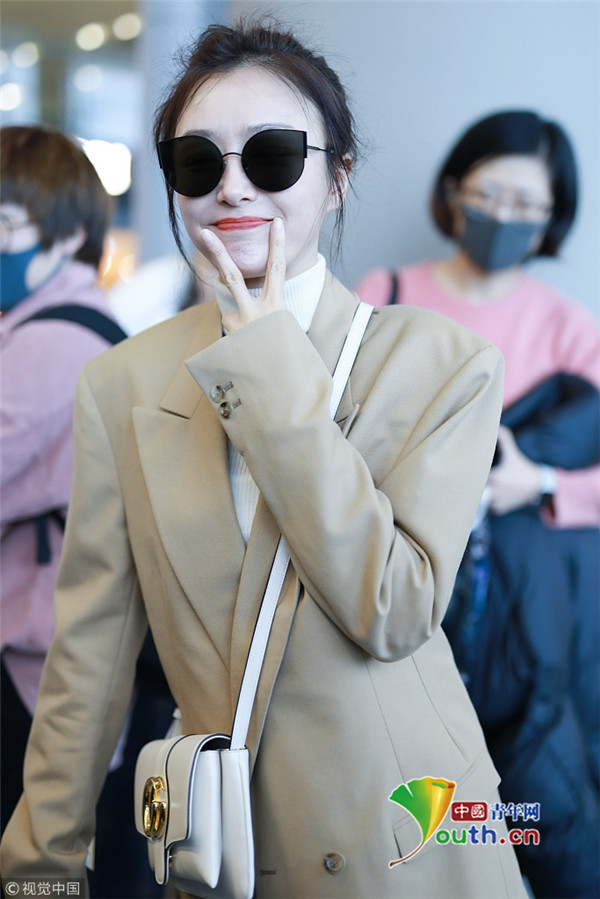 2018年12月11日,上海,秦嵐現身機場。她穿淺西裝配高領毛衣溫暖又時尚,梳丸子頭清新減齡,機場獲粉絲送告白信,嬌羞嘟嘴賣萌少女范十足。