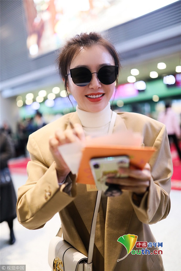2018年12月11日,上海,秦嵐現身機場。她穿淺西裝配高領毛衣溫暖又時尚,梳丸子頭清新減齡,機場獲粉絲送告白信,嬌羞嘟嘴賣萌少女范十足。