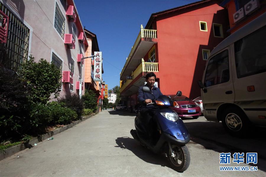 舒港發騎著電動車行進在村子里(10月28日攝)。