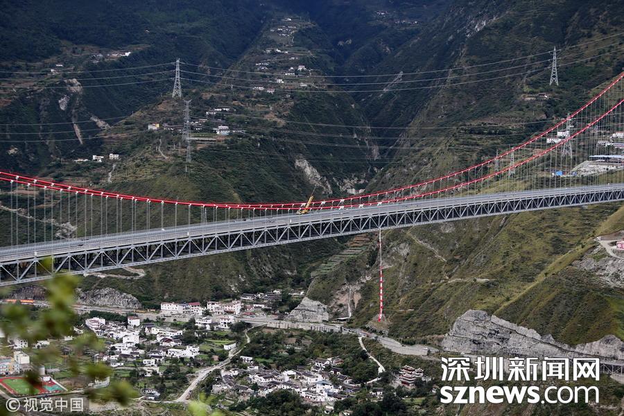 深圳新聞網訊 全長1411米、跨徑1100m、總造價超過10億元,被譽為“川藏第一橋”的雅康高速瀘定大渡河興康特大橋路面施工完成,具備了通行能力。