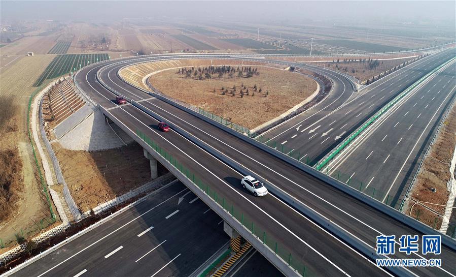 12月16日無人機拍攝的京秦高速公路二期工程河北玉田西進出口處的立交橋。 新華社記者楊世堯攝