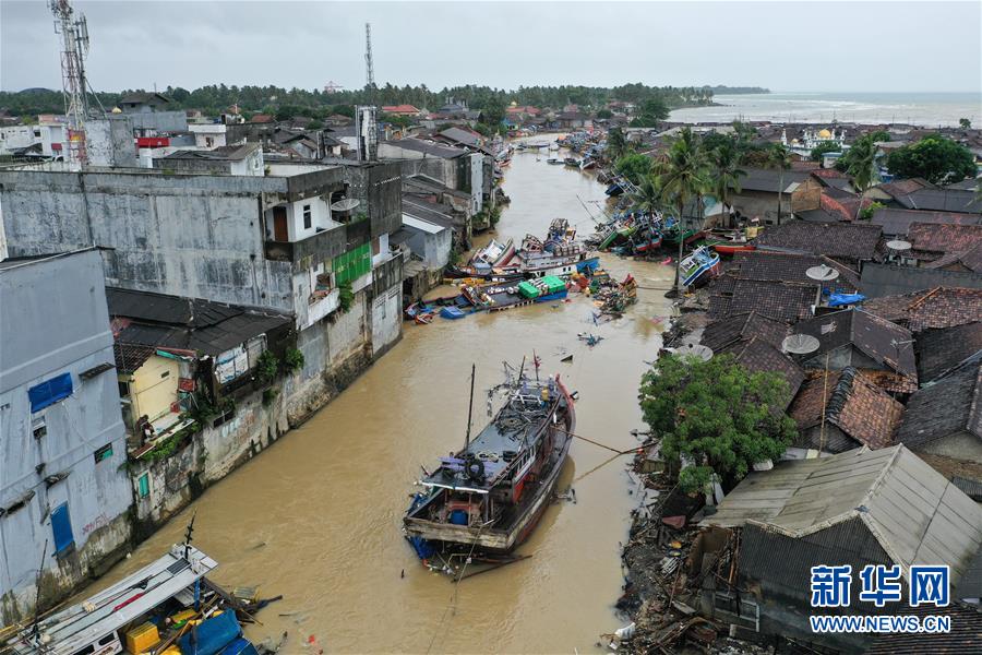 這是12月25日在印度尼西亞萬丹省板底蘭縣拍攝的遭海嘯襲擊后的托洛村,村子里近500艘漁船在海嘯襲擊后受到不同程度的損傷。 印度尼西亞抗災署25日通報說,印尼西部巽他海峽22日晚發生的海嘯已造成429人遇難,另有超過1.6萬人撤離。搜救工作正在緊張進行。 新華社記者杜宇攝
