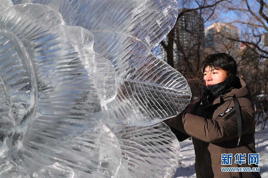 12月27日,選手在比賽中完善冰雕作品。 當日,第十六屆黑龍江省大學生冰雕藝術設計創作大賽在哈爾濱兆麟公園落下帷幕,全省高校共有99支隊伍參賽。 新華社記者曹霽陽攝