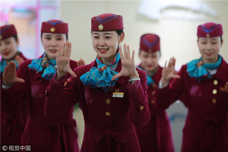 2018年12月27日,四川成都,為備戰即將開通的成雅鐵路,中國鐵路成都局集團有限公司成都客運段動車二隊對成雅動車的乘務人員進行理論、形體、服務禮儀等內容的培訓。