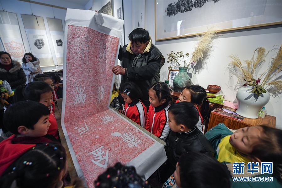 12月29日,孩子們在鄣吳鎮的老街上觀看拓印技藝展示。 當日,“中國竹扇之鄉”——浙江省安吉縣鄣吳鎮舉辦傳統文化迎新年活動。舉辦包括扇文化博覽會、扇面藝術展、制扇工藝展示及金石、拓印文化展示等活動,弘揚中華優秀傳統文化。 自上世紀七十年代以來,鄣吳鎮開始發展制扇產業,現在該鎮有各類制扇企業80余家,制扇行業從業人員2000多人,年產值達2億多元。 新華社記者 徐昱攝