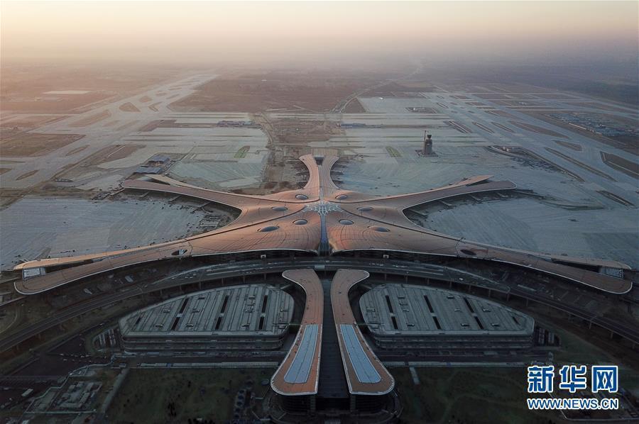 12月29日拍攝的北京大興國際機場(無人機拍攝)。 當(dāng)日,在北京大興國際機場,隨著清晨第一縷陽光灑在航站樓古銅色的屋頂上,寓意“鳳凰展翅”的航站樓呈現(xiàn)出金光燦燦的景象。 新華社記者 鞠煥宗 攝 圖片來源:新華網(wǎng)