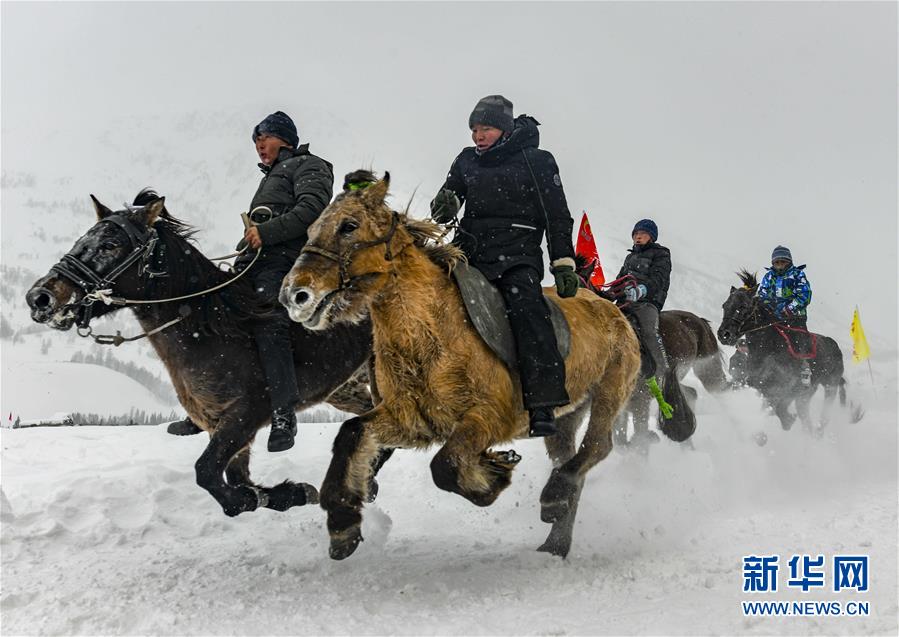 1月1日,在新疆禾木雪鄉,當地居民表演雪地賽馬。