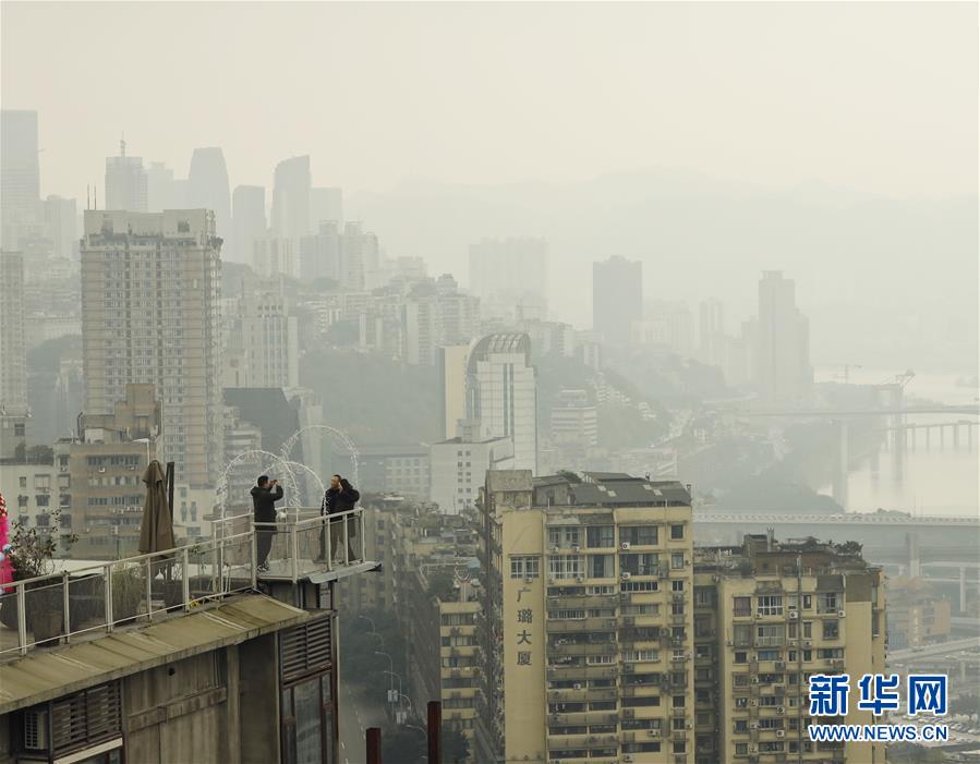 1月1日,游客在重慶鵝嶺二廠文藝街區內一棟老樓的屋頂花園游覽。
