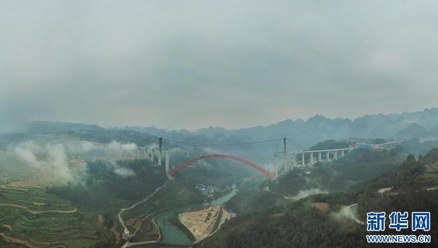 9月12日使用無人機拍攝的大小井特大橋。目前,橫跨在貴州省羅甸縣大井河上的大小井特大橋建設進入沖刺階段。大小井特大橋全長1.5公里,主跨450米,是世界最大跨徑上承式鋼管混凝土拱橋。據了解,該橋是平塘至羅甸高速公路關鍵性工程,對打通貴州“斷頭路”,助推滇黔桂石漠化片區脫貧攻堅具有重要意義。新華社記者劉續攝