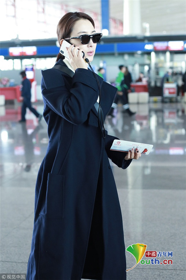 2019年1月7日,北京,馬蘇現(xiàn)身機(jī)場(chǎng)。她身穿黑色到腳大衣霸氣外露,架黑超涂紅唇似帥氣“女特工”。